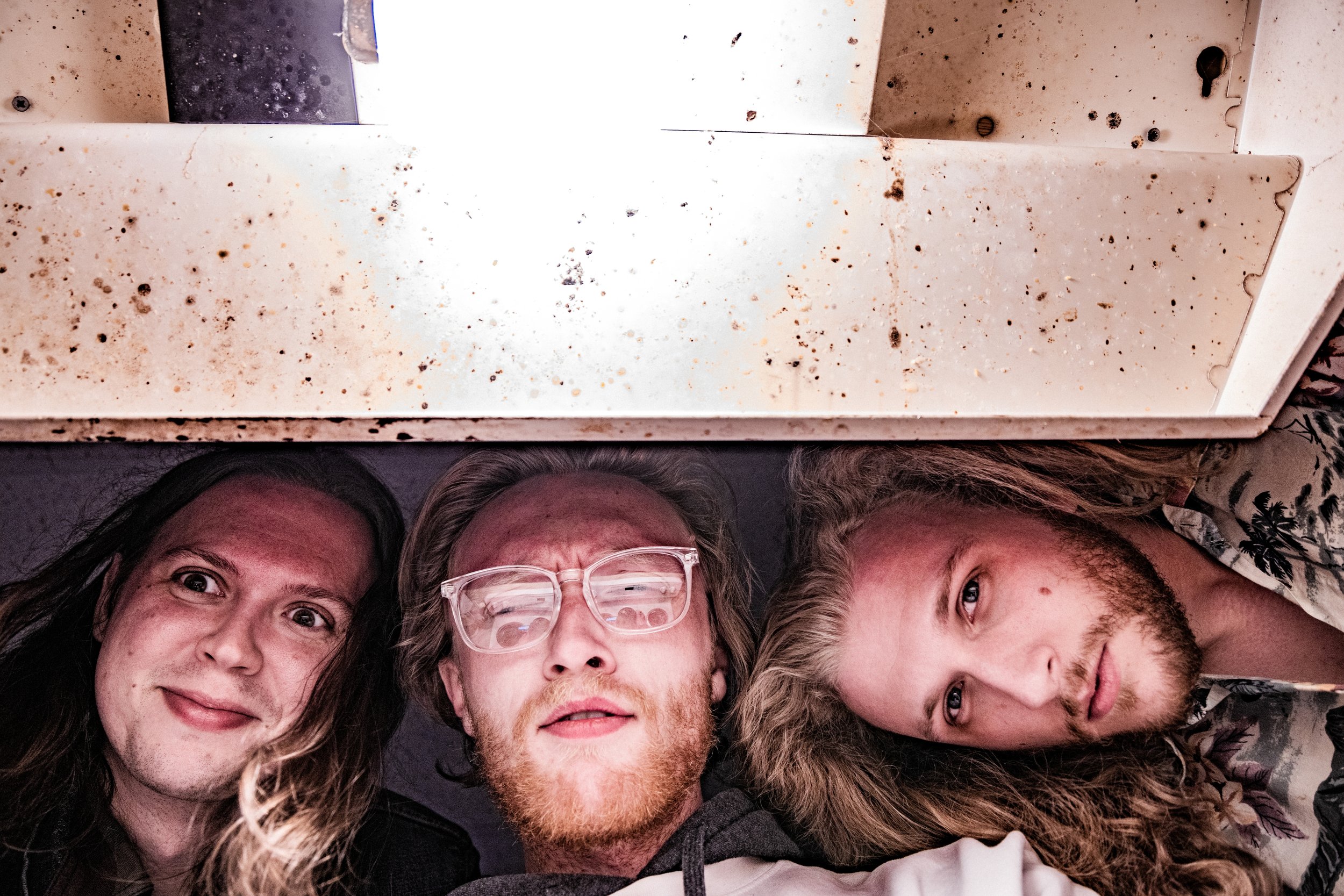Mulligan Stew is a three-piece band built for maximum boil-over. Hunter Walkup is the guitar-slinging, singing bag of bones from Texas. Alden Bertinet, the Goose, holds down the low end on bass, golden hair flowing freely. And on drums is ArchBishop Von Stewgler (Ethan Parker), the one-take wonder, keeping the chaos locked in.