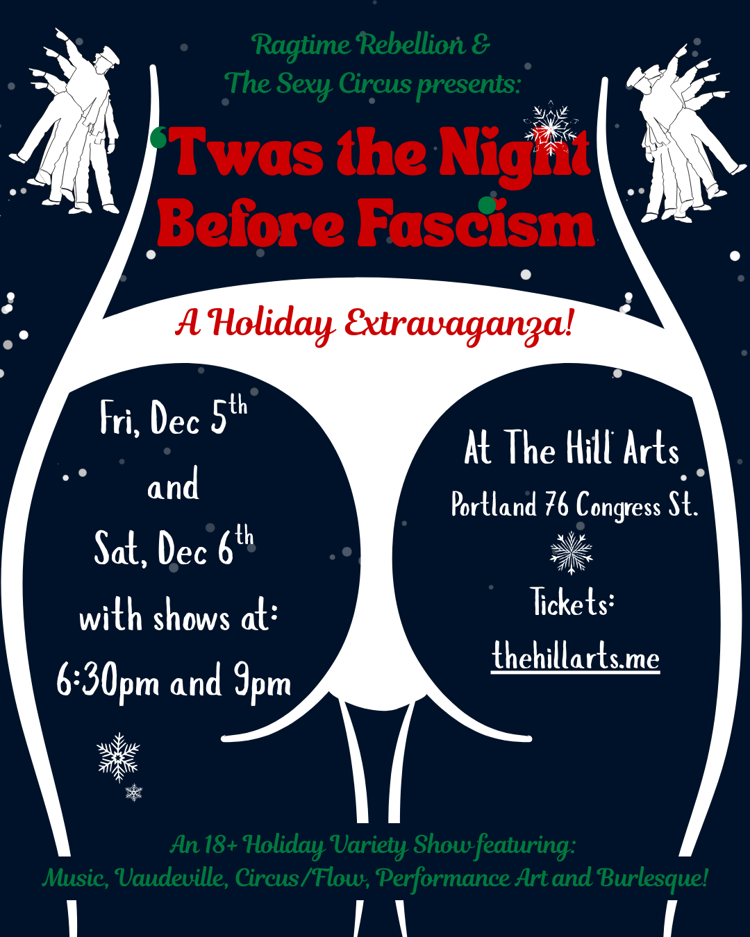 Music, Vaudeville, Circus/Flow, Performance Art and Burlesque for the most inappropriate holiday show in Maine! Rated "N" for Naughty!